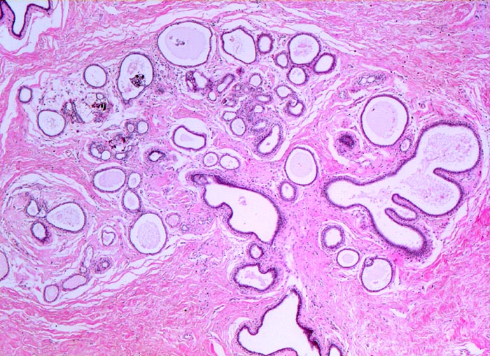 Die fibrös-zystische Mastopathie umfasst ein ganzes Spektrum von hormonell induzierten gutartigen Veränderungen des Mammaparenchyms.