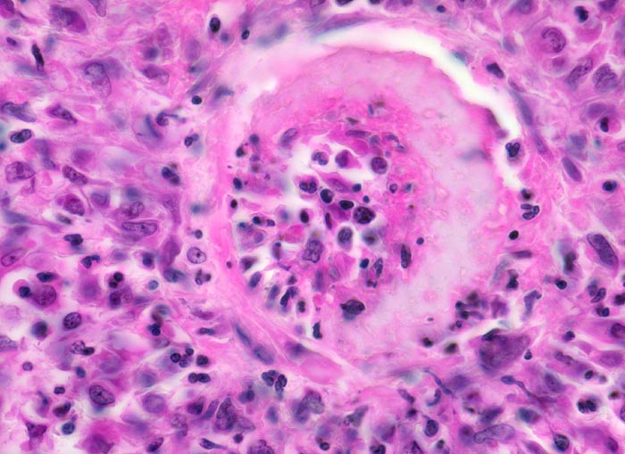 Nekrotisierende Entzündung mittelgrosser und kleiner Arterien ohne Glomerulonephritis und ohne Vaskulitis in Arteriolen, Kapillaren oder Venolen. Keine Assoziation mit antinukleären Antikörpern (ANCA). Kein mukokutanes Lymphknotensyndrom. Die Polyarteritis nodosa kann primär systemisch oder als isolierte Organvaskulitis auftreten (in Haut, Gallenblase, Appendix, Darm, Mamma, Hoden oder Uterus).