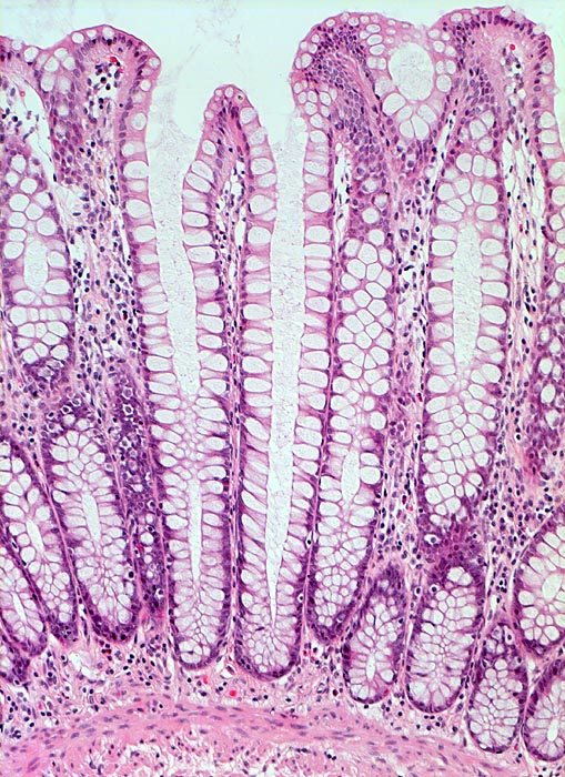Symptomatik: Kolonkarzinome können lange asymptomatisch sein. Am häufigsten klagen die Patienten über Bauchschmerzen, oder veränderte Stuhlgewohnheiten. Bei 30% sind okkulte Blutungen nachweisbar und 15% der Patienten haben eine mechanische Obstruktion. Rechtsseitige Tumoren sind meist grösser und tendieren zu Blutungen. Linksseitige Tumoren führen eher zu einer Obstruktion. Als Screeninguntersuchung zur Frühdiagnose wird die Durchführung einer Colonoskopie alle 10 Jahre ab dem 50. Altersjahr empfohlen. Bei hereditären Tumoren oder nach vorausgegangenem kolorektalem Karzinom sind häufigere Colonoskopien indiziert.