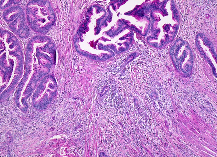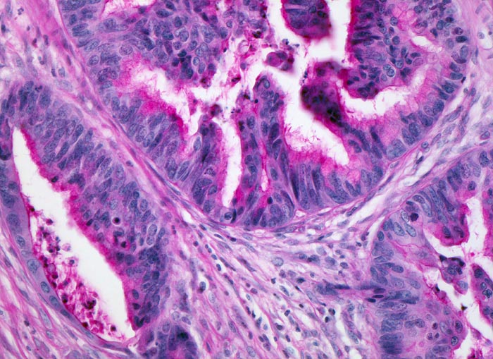 Prognostisch ungünstige histologische Parameter sind Lymphgefäss- und Veneninvasion, Perineuralscheideninvasion, hohes Tumorbudding (zahlreiche kleine Tumorzellcluster im Bereich der Tumorinvasionsfront) und Nachweis von Tumorgewebe im Resektionsrand.