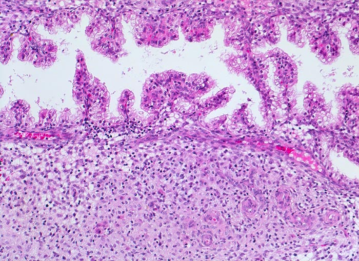 Seit wenigen Jahren werden Endometriumkarzinome – neben der klassischen histologischen Typsisierung – noch in molekular definierte Subgruppen unterteilt. Dies erfolgt im Idealfall bereits am Kürettagematerial und wird mittels molekularer Analysen (next generation sequencing) und Immunhistochemie durchgeführt.