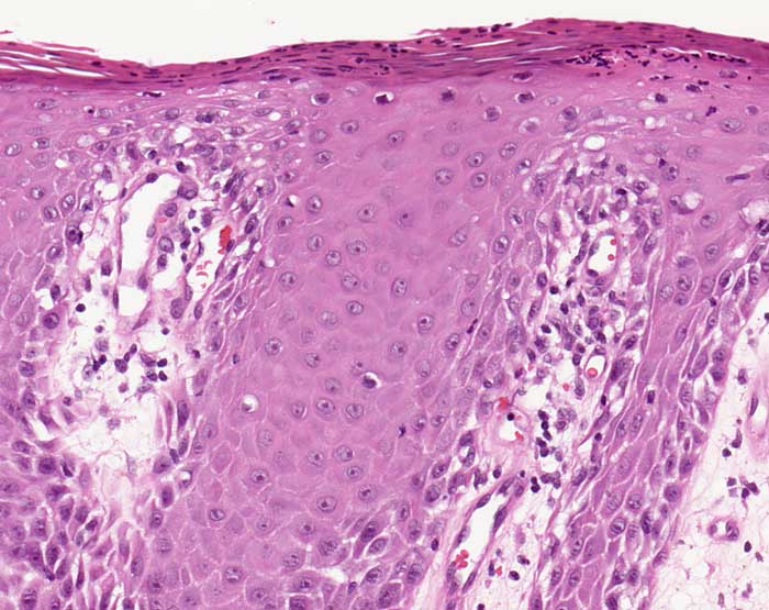 Die klassischen histologischen Befunde finden sich am deutlichsten in frühen schuppenden Papeln sowie nahe am Rand wachsender erythematosquamöser Plaques. Die behandelte Psoriasis ist histologisch hingegen schwer von anderen Dermatosen abgrenzbar.