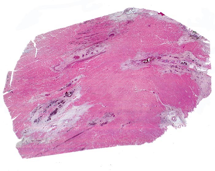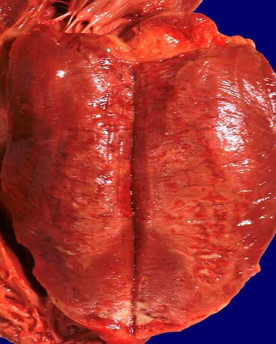 Grundsätzlich sind zwei Infarkttypen zu unterscheiden: der transmurale Infarkt, der mehr als die Hälfte der gesamte Dicke der Ventrikelwand betrifft und im Versorgungsbereich einer okkludierten Koronararterie liegt sowie der nichttransmurale Innenschichtinfarkt, der sich auf das Subendokard bzw. die innere Hälfte der Ventrikelwand beschränkt und aus disseminierten kleineren Nekrosebezirken besteht. Innenschichtinfarkte sind meist nicht auf eine frische Arterienokklusion zurückzuführen, sondern auf eine vorübergehende Mangeldurchblutung beispielsweise bei Hypotonie (Schockzustand, Anämie, Operation am offenen Herzen...) oder prolongierter Hypoxämie und gleichzeitig bestehender hochgradiger Koronarstenose. Subendokardiale Innenschichtinfarkte sieht man ausserdem nach