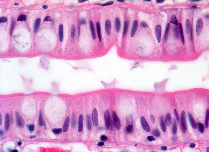 • Architekturstörung: Verplumpung und Abflachung der Dünndarmzotten. Verzweigte Krypten.