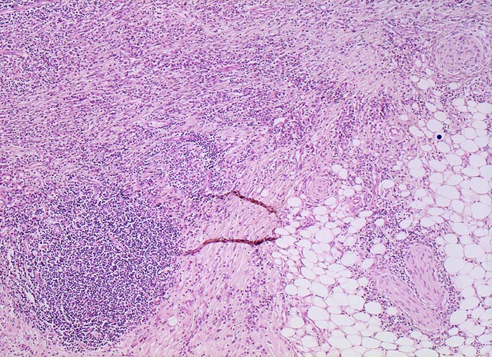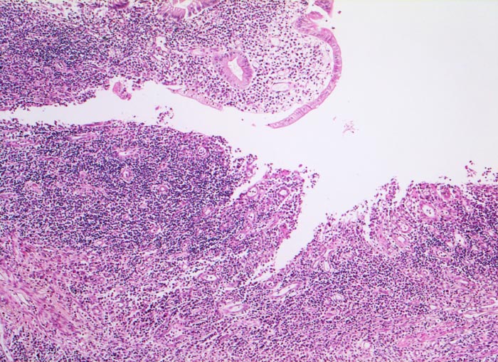 • Transmurale Entzündungsinfiltrate mit Lymphfollikelbildung.