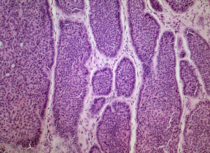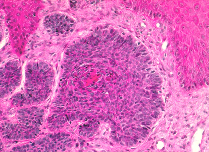 Das Basalzellkarzinom (synonym Basaliom) umfasst eine heterogene Gruppe von fibroepithelialen Tumoren und entspricht in seinen Differenzierungsmöglichkeiten denen des embryonalen Haarkeims.