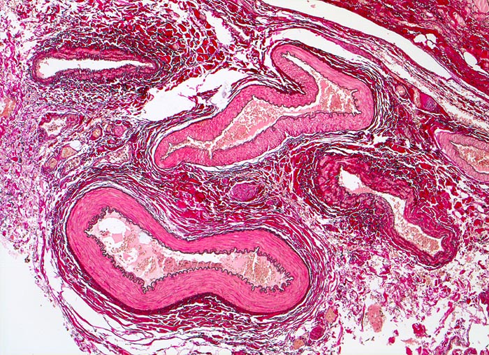 Morphologie: Die Atherosklerose befällt Arterien vom elastischen Typ und die grossen und mittelgrossen Arterien vom muskulären Typ.