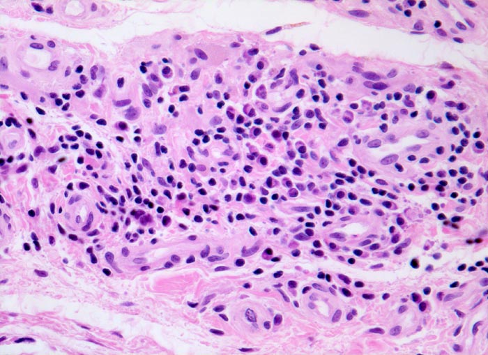 Innerhalb der high-grade Synovialitiden (histologischer Synovialitisscore >4) ist eine sichere Unterscheidung zwischen Psoriasisarthritis, reaktiver Arthritis und rheumatoider Arthritis rein histologisch nicht möglich, es sei denn, es liegen Rheumagranulome vor. Entscheidend für die integrative Diagnose sind daher auch klinische und serologische Befunde. Typische histologische Befunde können die klinische Diagnose aber unterstützen.
