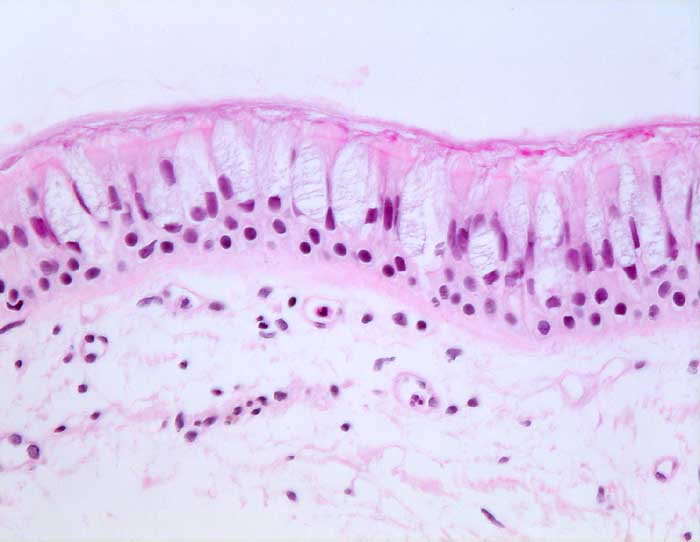 Becherzellen lassen sich vor allem in Bronchialsekret oder Bronchialbürsten identifizieren. Sie treten oft in Gruppen zusammen mit Flimmerepithelzellen auf, wobei das normale Verhältnis von Becherzellen zu Flimmerzellen etwa 1:5 bis 1:10 beträgt. Da Becherzellen rasch degenerieren sind Nacktkerne häufig. Becherzellen sind vermehrt bei Asthma, chronischer Bronchitis und Bronchiektasen. Bei sehr zahlreichem Auftreten muss differentialdiagnostisch an das Vorliegen eines muzinösen bronchioloalveolären Karzinoms gedacht werden.