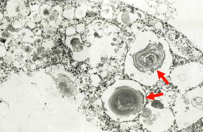 Das Antiarrhythmikum Amiodarone kann bei einem Teil der Patienten Lungeninfiltrate verursachen. Wichtigster Befund in der BAL ist eine Vermehrung der Makrophagen auf über 300x10^6/l. Viele Makrophagen sind zu Schaumzellen umgewandelt und am besten in der MGG Färbung an ihrem breiten fein vakuolären Zytoplasma erkennbar. Gleich aussehende Makrophagen werden auch im Pleuraerguss beobachtet. Daneben können Neutrophile, Eosinophile und Lymphozyten vermehrt sein. Die Makrophagen enthalten elektronenmikroskopisch darstellbare lamelläre Körperchen. Eine grosse Anzahl dieser Körperchen beweist einen Amiodaroneschaden.