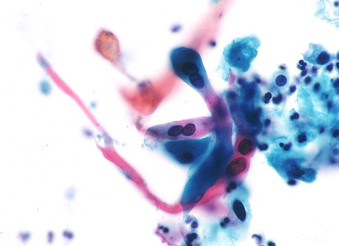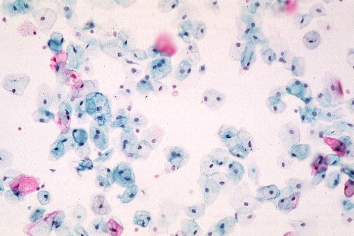 Der zytologische Befund entspricht dem der Plattenepithelkarzinome an anderen Orten. Allerdings finden sich oft auffallend wenig Tumorzellen, die überdies oft nur geringe Atypien aufweisen.