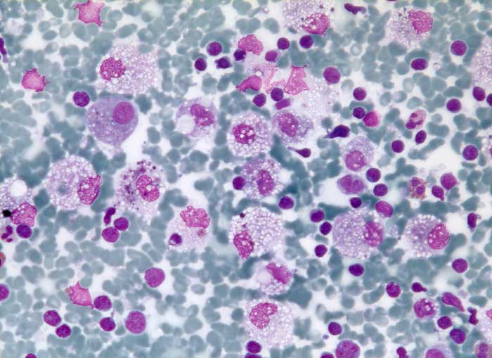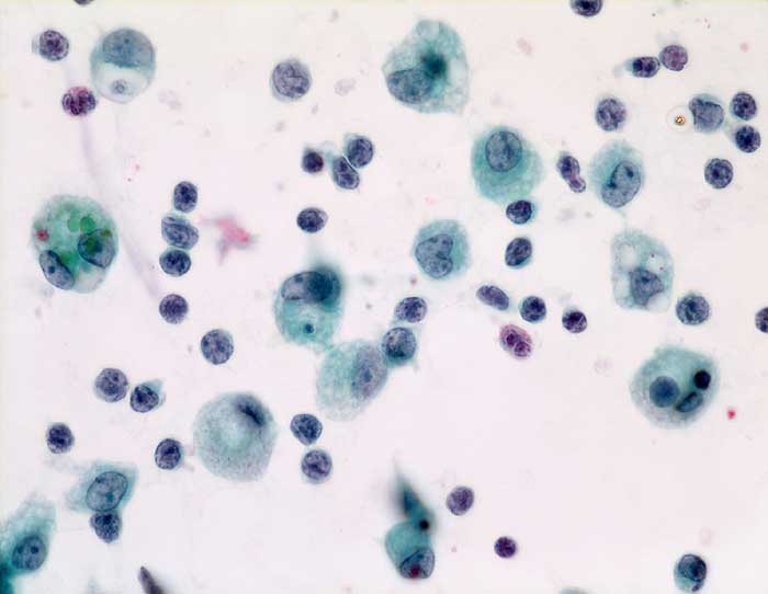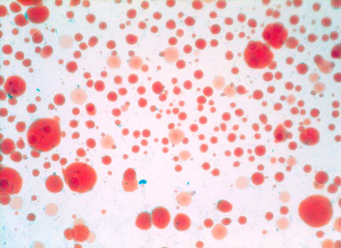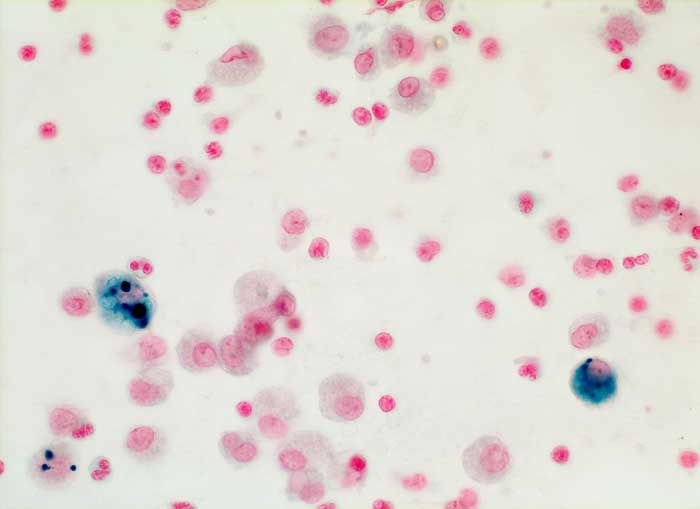 Das zytologische Bild nach einem Hämatothorax wechselt im Zeitablauf. Anfänglich findet sich Frischblut. Nach zwei bis drei Tagen beginnen die Erythrozyten zu zerfallen. Die Erythrozyten werden von Makrophagen phagozytiert. Ab dem fünften bis sechsten Tag enthalten die Makrophagen Hämosiderin. Die Kerne der aktivierten Makrophagen können mit Tumorzellen verwechselt werden. Durch den Zerfall der Erythrozyten werden Lipide frei, die unter anderem in Cholesterin umgewandelt werden. Makroskopisch erscheint der Erguss gelb und trüb.