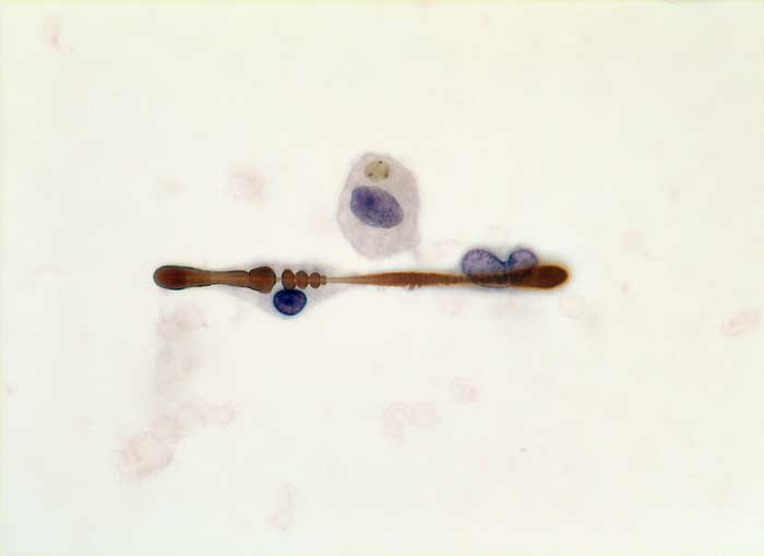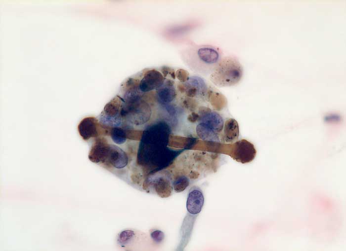 Asbest- und Pseudoasbestkörperchen entstehen, wenn Makrophagen versuchen, überlange mineralische Fasern zu phagozytieren. Bei diesem Versuch gehen die Makrophagen zugrunde und ihr eisenhaltiges Zytoplasmaprotein (Atmungsfermente, Hämosiderin und Ferritin) schlägt sich an der Faser nieder. Diese Proteine reihen sich perlschnurartig an der etwa 1 Mikrometer im Durchmesser messenden zentralen Faser auf und bilden an deren Ende trommelschlegelartige Auftreibungen. Da die zentrale Faser nicht immer aus Asbest besteht, wird im englischen Sprachgebrauch der Begriff "ferruginous body" vorgezogen.
