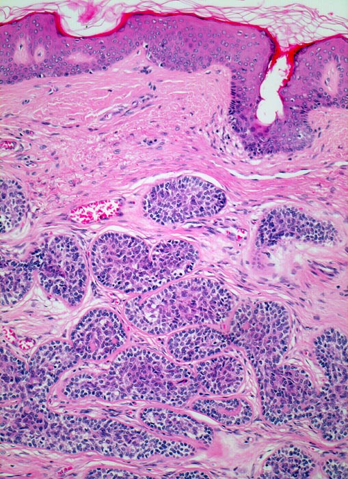 Das zytologische Bild ist täuschend bland. Die Tumorzellen sind klein und monomorph, die Kern-Zytoplasmarelation ist hoch. Die Kerne sind dunkel, rund bis oval oder angulär und enthalten bisweilen einen kleinen Nukleolus. Typisch sind azelluläre Matrixkerne, um die die Tumorzellen angeordnet sind.