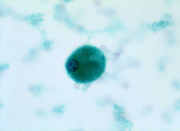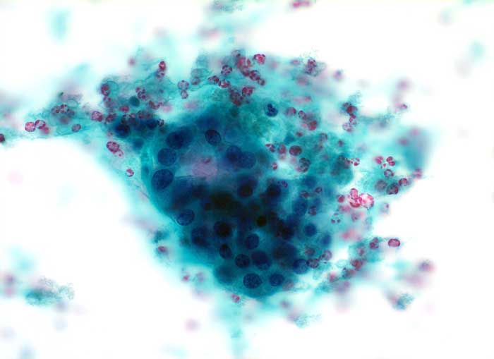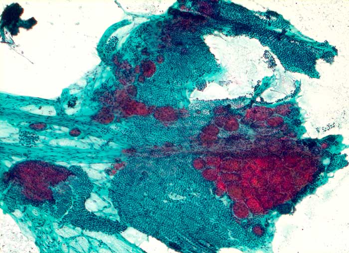 Bei follikulären Läsionen gelten folgende grobe Regeln: Viel Kolloid, wenig Zellen und Makrofollikel sprechen für eine nicht neoplastische Struma. Wenig Kolloid, zellreicher Ausstrich und Mikrofollikel sprechen für eine neoplastische Läsion. Da die Zellularität stark von der Punktionstechnik abhängt, können aufgrund der oben formulierten Regeln keine exakten Diagnosen, sondern lediglich Aussagen zur Wahrscheinlichkeit des Vorliegens einer bestimmten Läsion abgegeben werden.