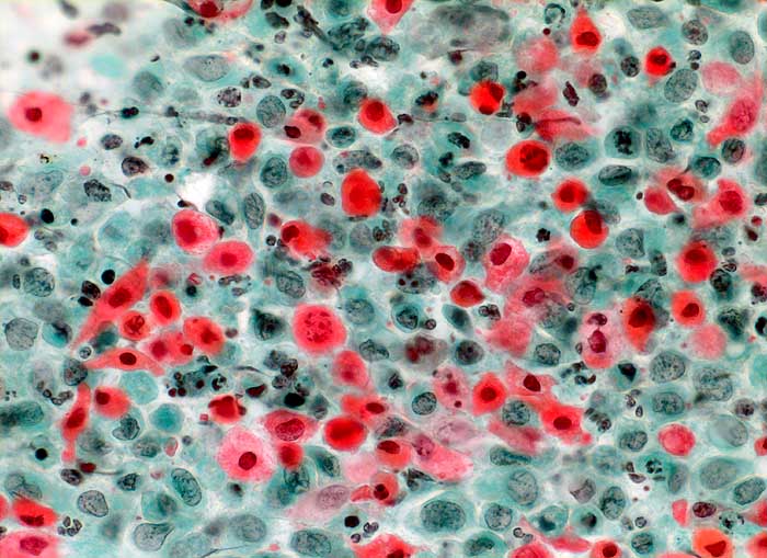 Zervikale Lymphknotenmetastasen eines Plattenepithelkarzinoms stammen oft von Primärtumoren aus dem HNO Bereich. Diese sind im Unterschied zu den Plattenepithelkarzinomen der Lunge, die ebenfalls in die Halslymphknoten metastasieren, meist hoch differenziert, stark verhornend und ausgedehnt nekrotisch.