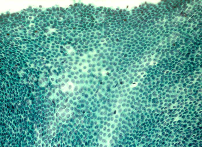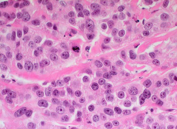 Die Kohäsivität ist das wichtigste Kriterium zur Feststellung des Differenzierungsgrades. Bei hoch differenzierten Karzinomen finden sich Verbände, bei wenig differenzierten liegen die Tumorzellen vermehrt einzeln. Wenig differenzierte Karzinome zeigen gesteigerte Kernatypien und der Hintergrund ist eher detritisch aufgrund ausgedehnter Tumornekrosen.