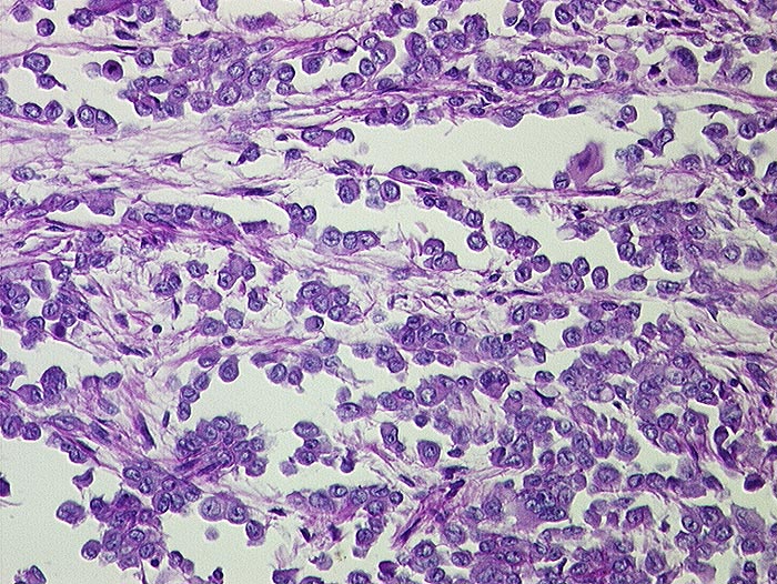 Entscheidend für die Diagnose eines malignen Mesothelioms sind maligne Zellen, die aussehen wie Mesothelzellen. Typisch ist ein Kontinuum von gutartigen, abnormen und malignen mesothelialen Zellen. Die Tumorzellen bilden polyzyklisch begrenzte papilliforme Verbände oder sitzen einem homogenen Matrixkern auf. Zellkannibalismus und lange Zellketten (Indian Files) sind häufig bei Mesotheliomen und selten in gutartigen Ergüssen. Die einzelnen malignen Zellen sind grösser und variabler als gutartige Mesothelien. Oft trifft man auf grosse und mehrkernige Tumorzellen. Das Zytoplasma von Mesotheliomen ist auffallend dicht ,anders als das eher helle Zytoplasma von Adenokarzinomen.