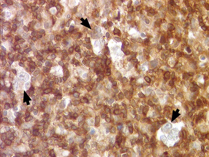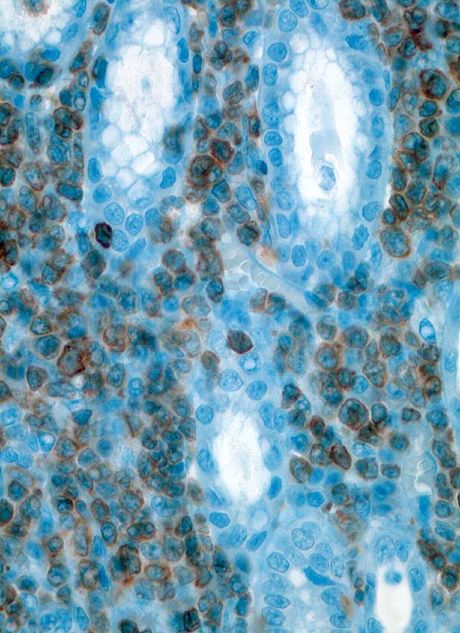 - T-Zell ALL und T-Zell Lymphome positiv. Einige Fälle von Mycosis fungoides, pleomorphen Lymphomen und anaplastischen grosszelligen Lymphomen können CD3 negativ sein.