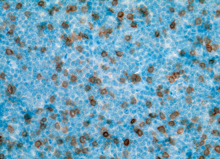 - Pan T-Zell Marker positiv in Thymozyten, ruhenden und aktivierten T Lymphozyten. Negativ in B Lymphozyten, Makrophagen und myeloischen Zellen.