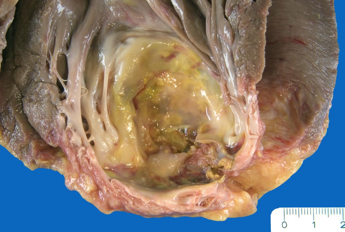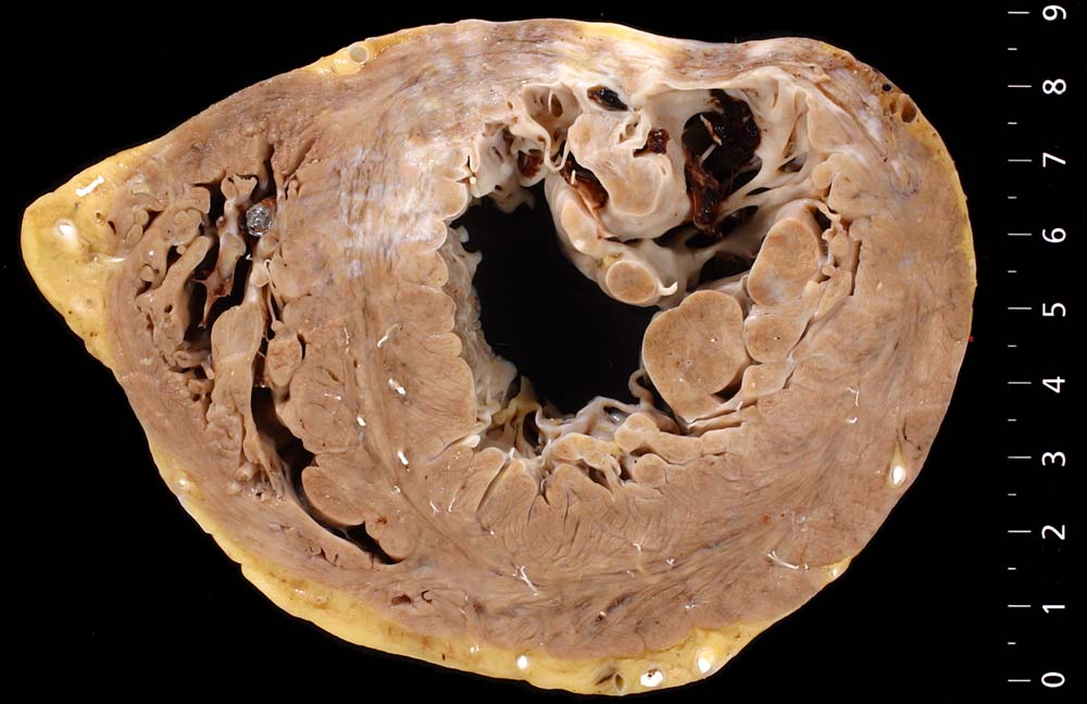 Im Bereich grösserer Narben ist das Myokard verdünnt. Bei 8% der transmuralen Infarkte entsteht im Bereich der Narbe ein Herzwandaneurysma ( 2088) mit oder ohne wandständige Thrombose ( 348).