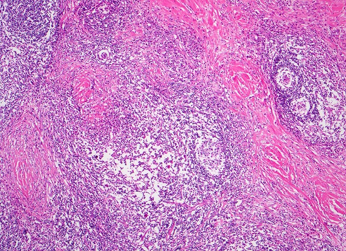 Die befallenen Lymphknoten sind schmerzlos vergrössert. Eine B-Symptomatik ist oftmals vorhanden. Anämie und/oder Pruritus liegen bei rund einem Viertel der Patienten vor. Etwa 50% der Patienten sind im Stadium I oder II.