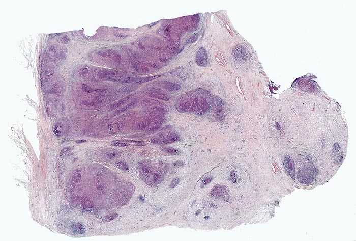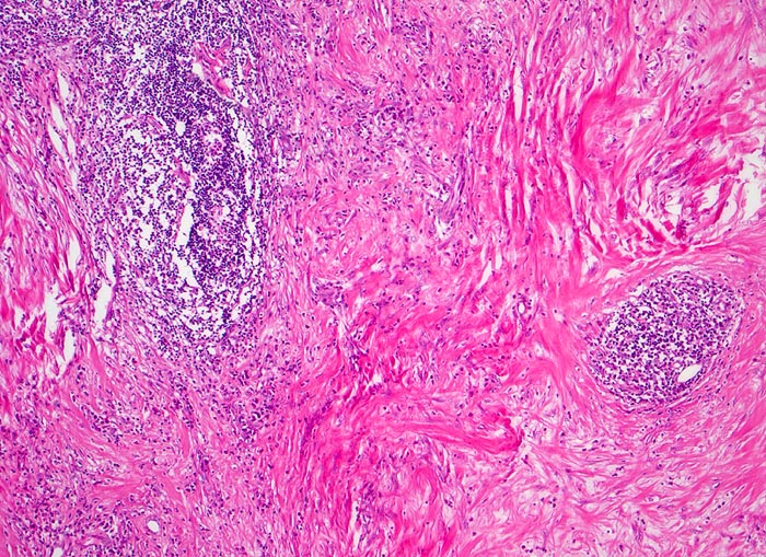 Histologisch charakteristisch für diesen Subtyp sind Sklerose, noduläres Wachstumsmuster und Lakunarzellen. Bei der nodulären Sklerose können Grad I und Grad II (15-25%) Lymphome unterschieden werden; unter modernen Therapiekonzepten allerdings ohne prognostische Bedeutung