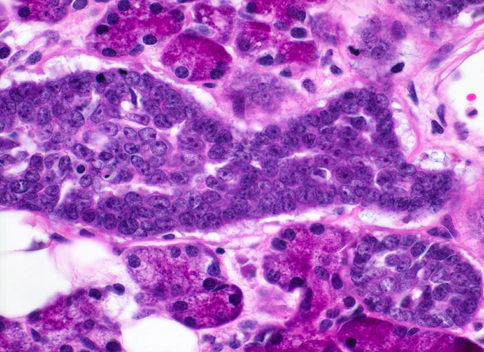 - Basaloide kleine Tumorzellen mit wenig Zytoplasma.