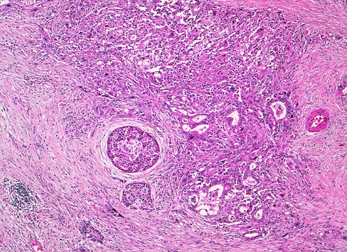 Das duktale Adenokarzinom ist bei weitem der häufigste im Pankreas diagnostizierte Tumortyp (85-90% der Pankreastumoren).
