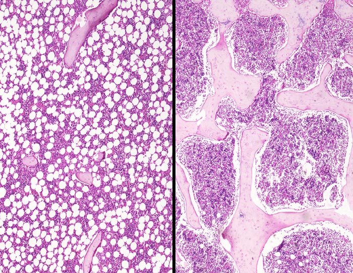 • Hochgradige Reduktion der intertrabekulären Vernetzung.