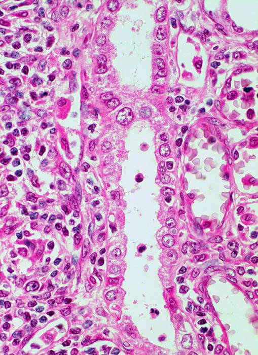 • Vereinzelt Lymphozyten im Tubulusepithel (Tubulitis)
