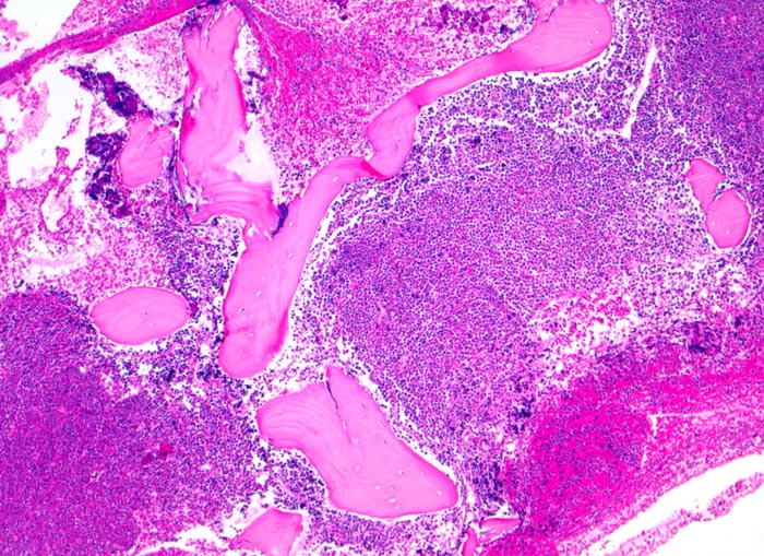 Die Vorläufer B- bzw. T- lymphoblastische Leukämie ist eine Neoplasie von Lymphoblasten der B- (85-90%) oder T- (10-15%) Zell Linie.