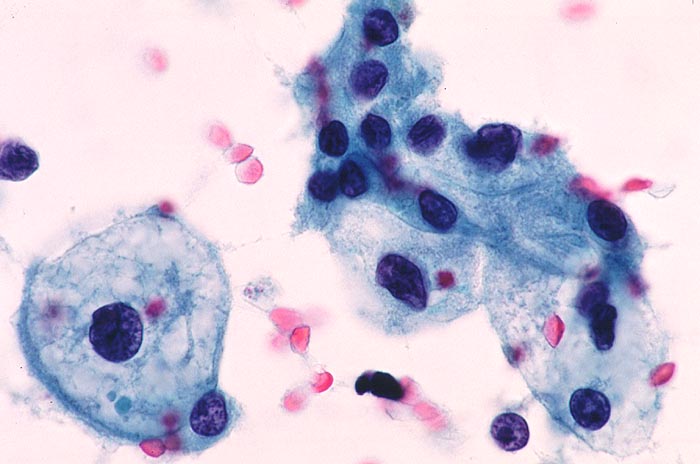 Der Ausstrich vom nativ eingesandten Nephrektomiepräparat enthält grossleibige Zellen mit entrundeten grobstrukturierten Kernen. Das Zytoplasma erscheint grau-blau, zum Teil auch angedeutet wolkig oder angedeutet vakuolär. Die Zellen sind pflanzenzellartig voneinander abgegrenzt.