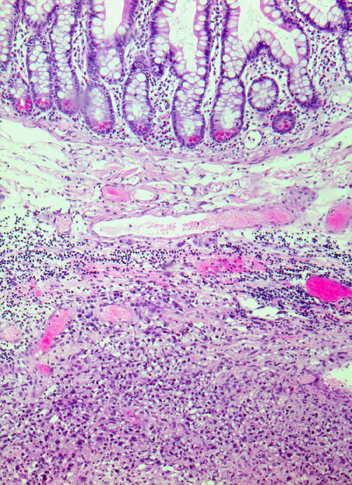 Grosszelliges Lymphominfiltrat in der Submukosa.
