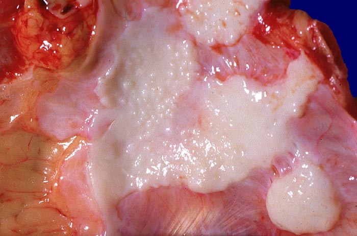 Weisse hyaline plaqueartige Auflagerungen auf der Pleura parietalis.