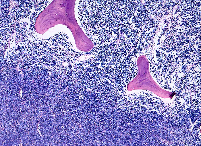 Komplette Verdrängung von blutbildendem Mark und vom Fettmark.