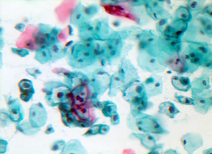 Portioabstrich: Superficialzellen, Intermediärzellen und typische, teils