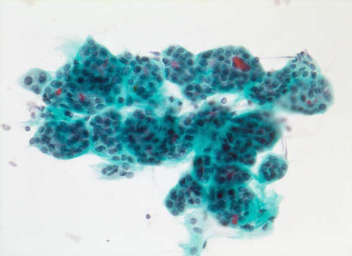 Feinnadelpunktat Knoten zervikal: zahlreiche kleine Follikel mit wenig Kolloid.