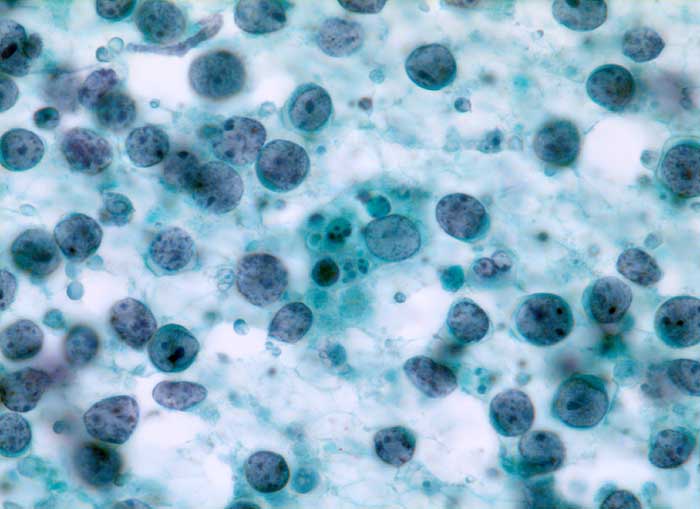 Zytologische Diagnose: Malignes Non Hodgkin Lymphom. Die genaue Klassifikation sollte am histologischen Präparat erfolgen.