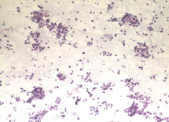 Zytologische Diagnose: Zahlreiche Karzinomzellen und