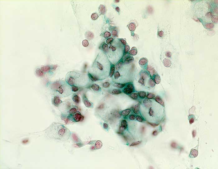 Dieser Typ des Adenokarzinoms ist oft sehr schwer zu diagnostizieren. Der Tumor ist so hoch differenziert, dass die Tumorzellen zunächst als hypertrophe Becherzellen interpretiert wurden. Suspekt sind feine Kerbungen der Kerne, Unregelmässigkeit der Nukleolen und die Siegelringform der schleimbildenden Zellen.