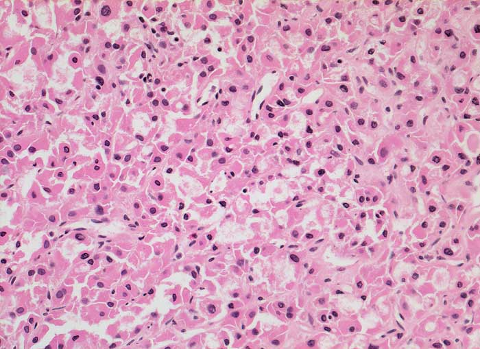 Mikrofollikulärer Tumor aus leicht polymorphen onkozytären Zellen.