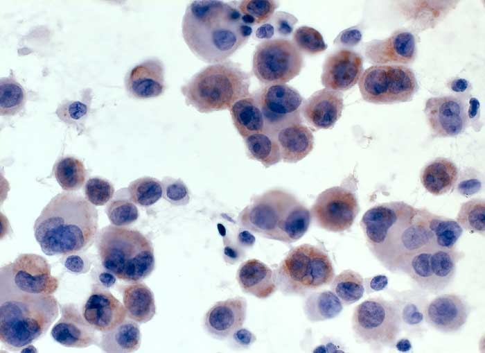 Pleuraerguss: Mit dem Panzytokeratinmarker Lu-5 färben sich sowohl Mesothelien als auch Karzinomzellen positiv an. Dieser Marker erlaubt deshalb keine Unterscheidung der beiden Zellpopulationen.