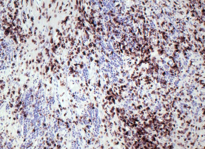 Die grösseren Tumorzellen reagieren nicht mit dem panleukozytären Marker CD45.