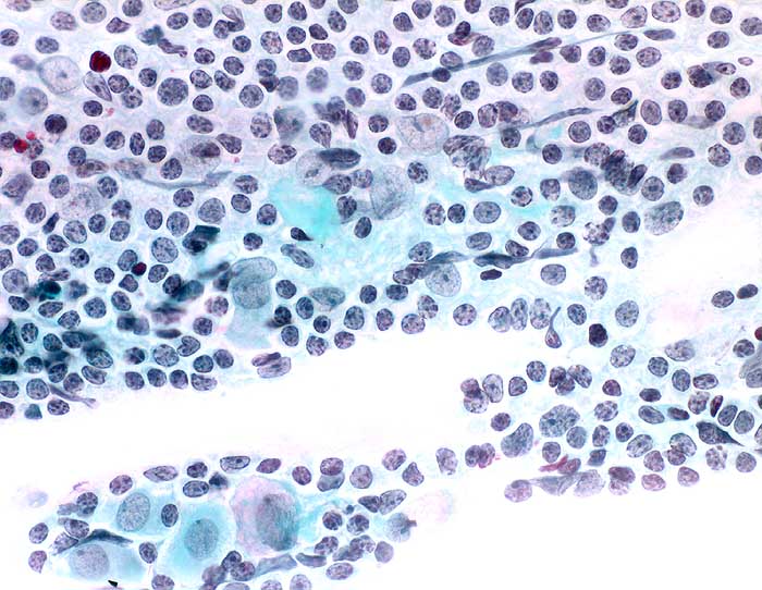 Portio/Zervixabstrich: dicht gelagerte Keimzentrumszellen.